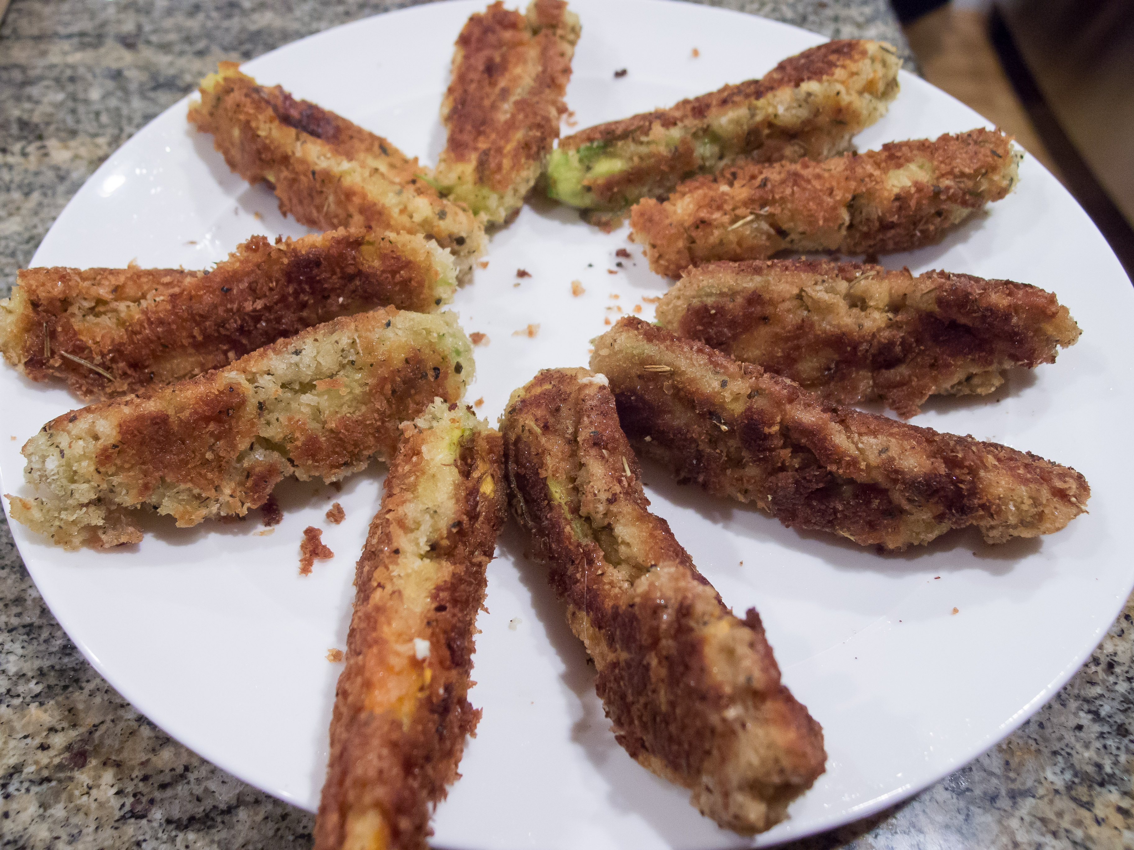 A few years ago while at our local farmer’s market, I came upon a container of squash blossoms. I had no idea what i was going to do with them, but I was in the mood to try something new so I purchased a box. I excitedly showed my husband my new purchase when I got home, but his enthusiasm wasn’t quite at my same level. But, he was game to try pretty much anything I made, so I started Googling ideas. Most ideas that came up suggested stuffing them with cheese and frying them, so that’s what I did. I didn’t have any expectations that first time I used the squash blossoms, and I don’t even remember what I stuffed them with, but they turned out pretty good, even the husband was impressed. I’ve revised the recipe over time and experimented with different cheeses (soft crumbly cheeses, like goat cheese, are a yes, while soft moist ones, like mozzarella, are not a great fit) and different coatings, but have settled on a good recipe, which I included below.