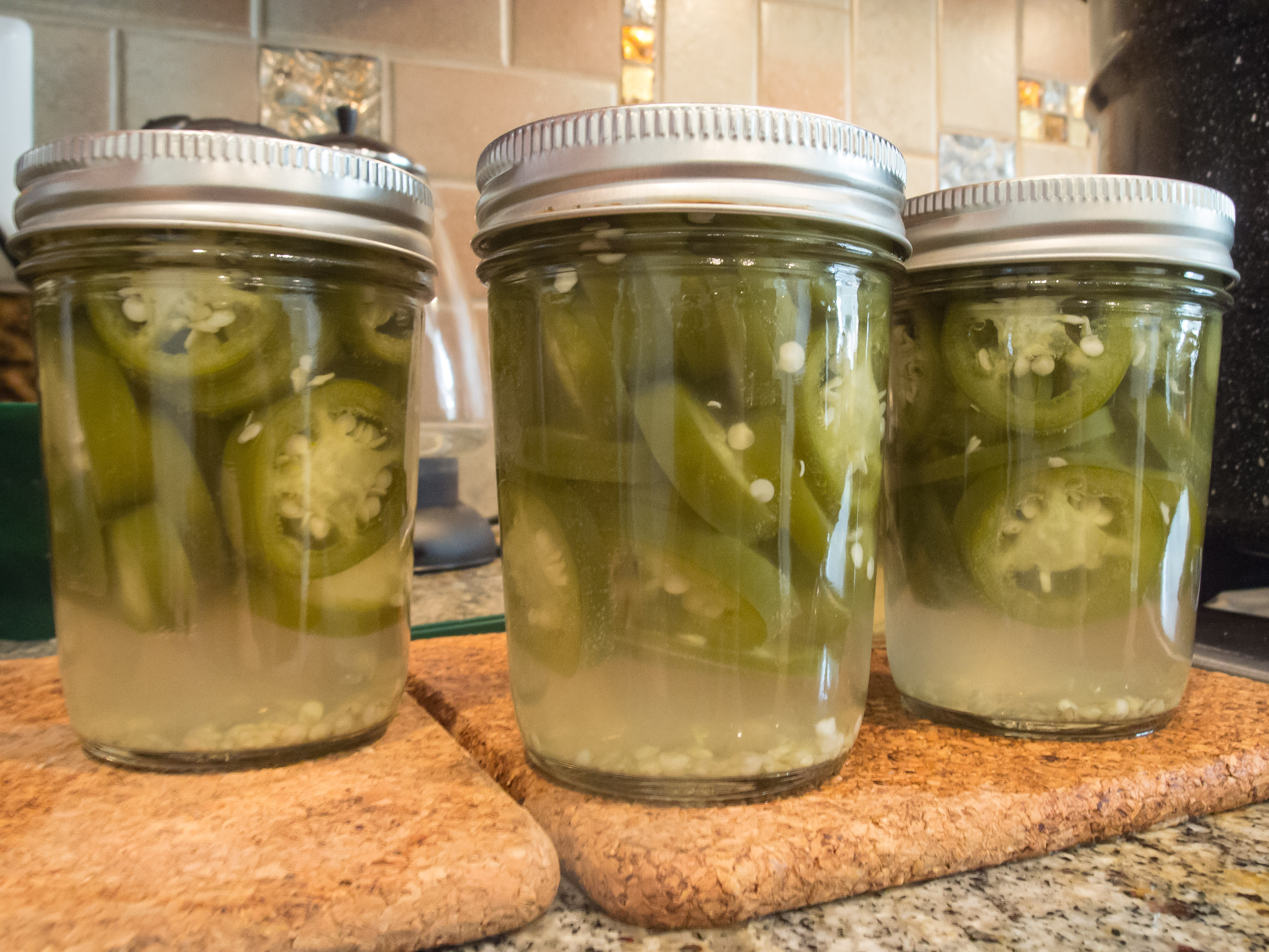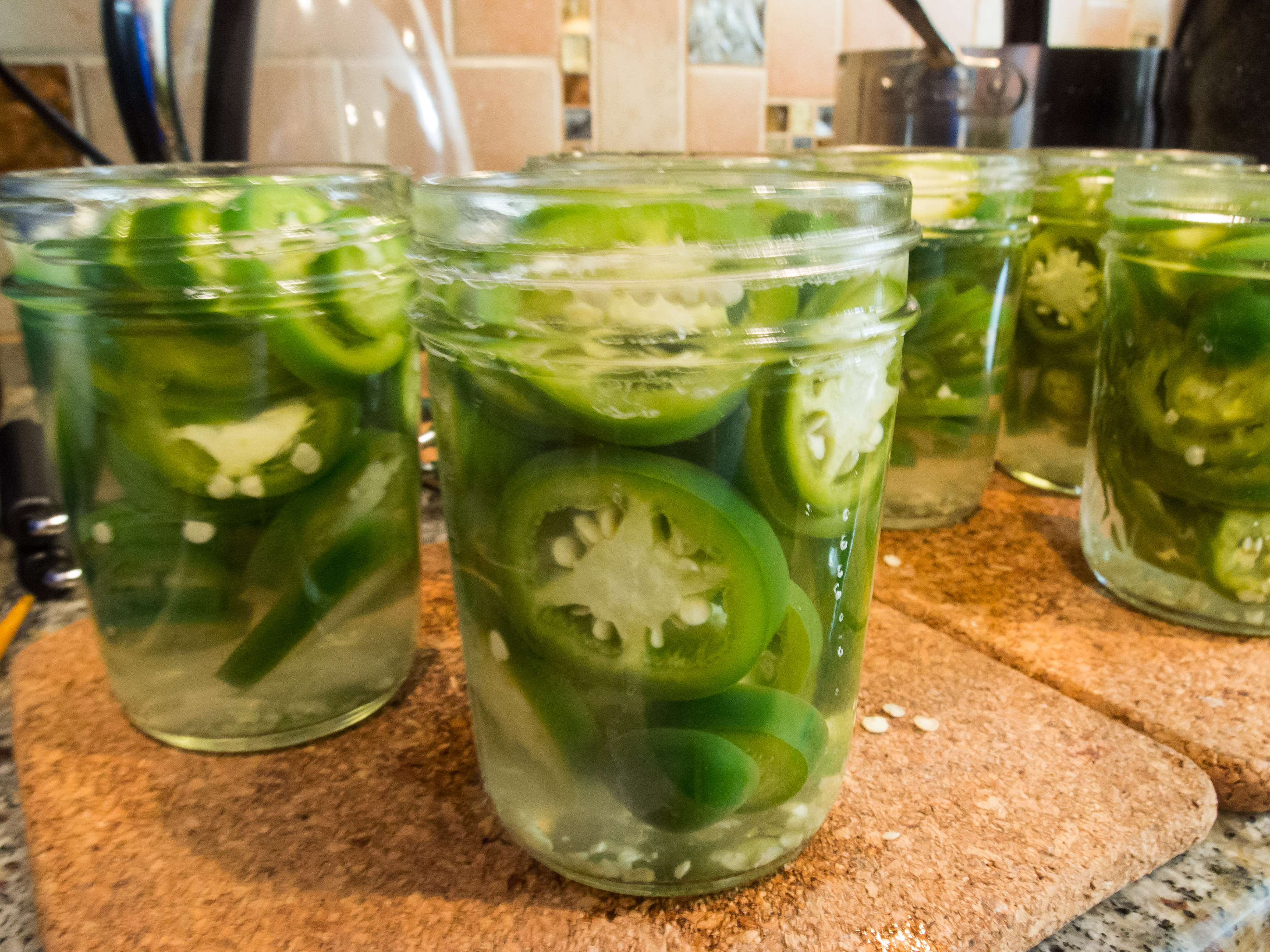 Ladle the brine over the jalapenos, leaving a 1/4 inch headspace. Carefully tap the jars on the countertop and use a wooden chopstick to dislodge any bubbles.