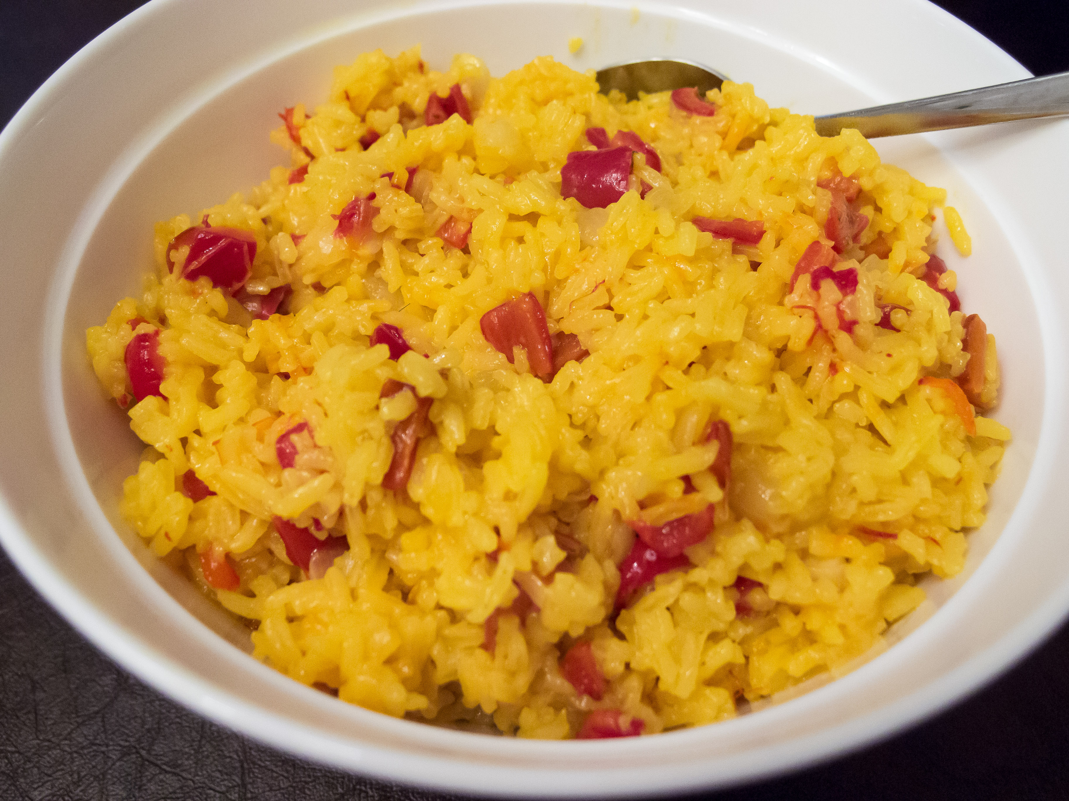 For dinner, the Washington Post ran their Top Tomato contest winners last week, and one recipe really caught my eye. It was a braised lamb shank with fresh tomatoes and it turned out fantastically. I knew it would make the perfect entree for the weekend, especially since I wanted to use some of the larger tomatoes from the garden. I had to make some modifications (noted below) to create more tomato sauce, but the end result was delicious. I love saffron rice with braised shanks, and the one I chose paired really nicely to soak up all that wonderful sauce, as well as using up some red peppers from the garden. I wanted to add some color to the plate, along with making an easy side, so I picked up some green beans at the farmer’s market that morning. I did a quick steam of them and added a tablespoon of melted butter and the juice of half a lemon. Dinner was rounded out with a homemade plum crumble with fresh plums purchased from the farmer’s market.