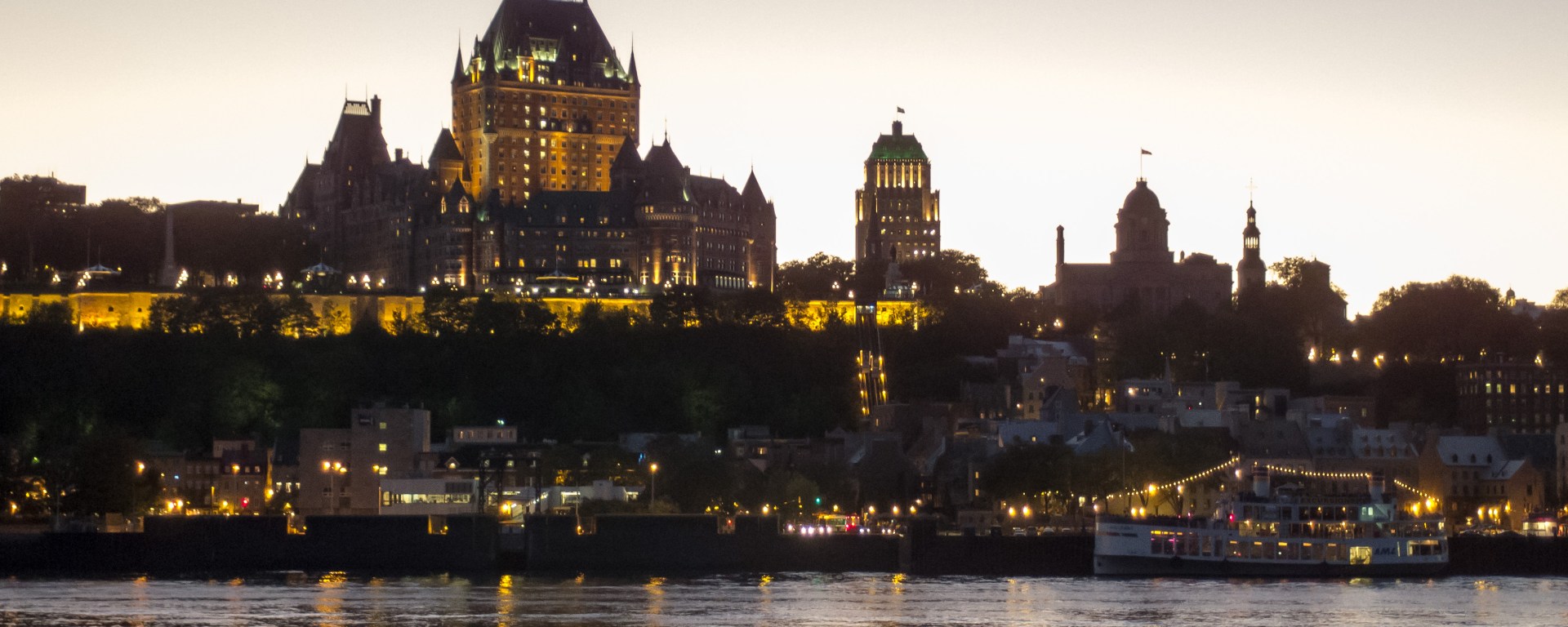 After lunch, we wanted to burn off some of those calories so we walked around the old city, popping in to stores to do some window shopping, but mostly just walking up and down the old streets. The edge of the city along the riverbank is quite steep so we had plenty of hills to navigate. We took the funicular down to the water’s edge and boarded a ferry in the late afternoon. The ferry took us across the St. Lawrence River, offering spectacular views of the famous Chateau Frontenac and the fortress walls around city. We ended up timing our return trip just in time for a beautiful sunset ride back across the river.
