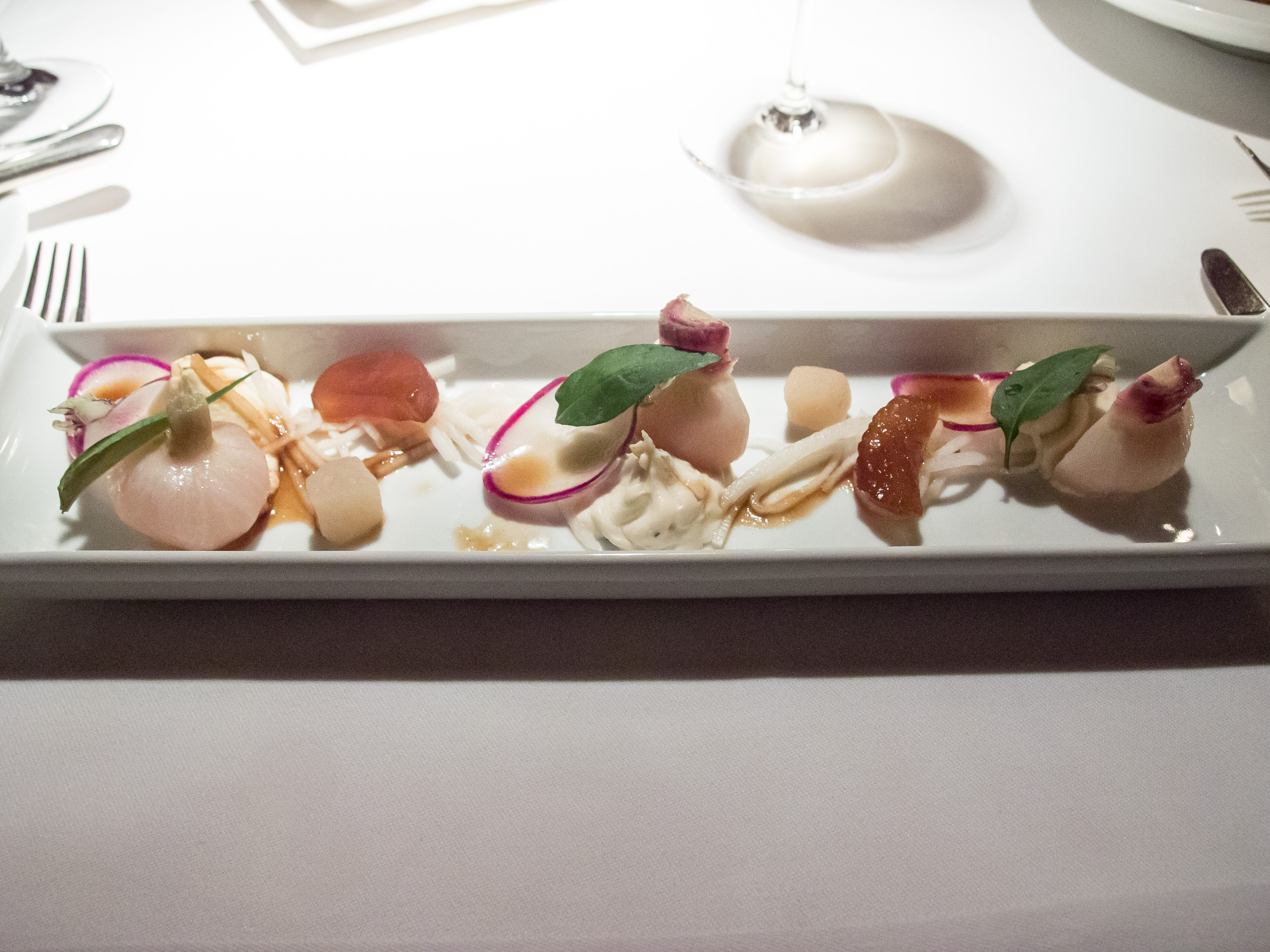 My one big surprise came when I selected the local turnip dish over the mushroom dish for the first course. I’m not so much a fan of mushrooms, so this decision seemed like the lesser of two evils, because really, how good could a dish of turnips be, right? Oh man, even as I’m writing this post, I wish I had that beautiful plate of turnips in front of me. The turnips were prepared six ways and the whole ensemble was delectable. This dish has me inspired to try to use turnips more often this winter!