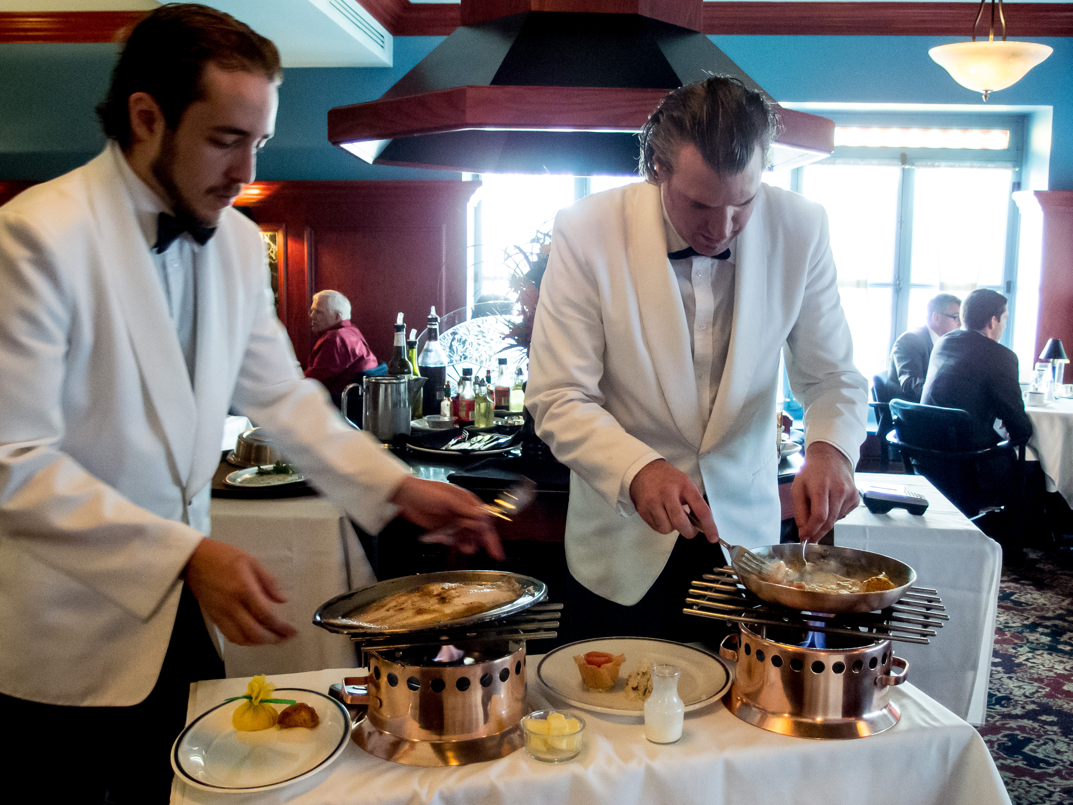 We finally extracted ourselves from the bar at Chateau Frontenac for our lunch reservation across the street at Le Continental. Le Continental was featured on the Quebec episode of No Reservations with Anthony Bourdain as a restaurant that focuses on classic French cuisine and is known for their table side service. It was such a treat to enjoy table side service, which is pretty uncommon these days! We shared the Caesar salad for two (although when you see how much olive oil goes in to the dressing, it makes you rethink watching your food being made), but it was so delicious! Toby ordered the shrimp flambe so we could watch that being made, while I have always wanted to try dover sole meunière, so I decided that would be a perfect choice. The dover sole was prepared in the kitchen, but was deboned and sauced table side, and the fish had the perfect texture and a light taste. Unfortunately, we were too stuffed to order a flambe dessert, but all of the food was delicious and it was great to have the classic French cuisine experience!