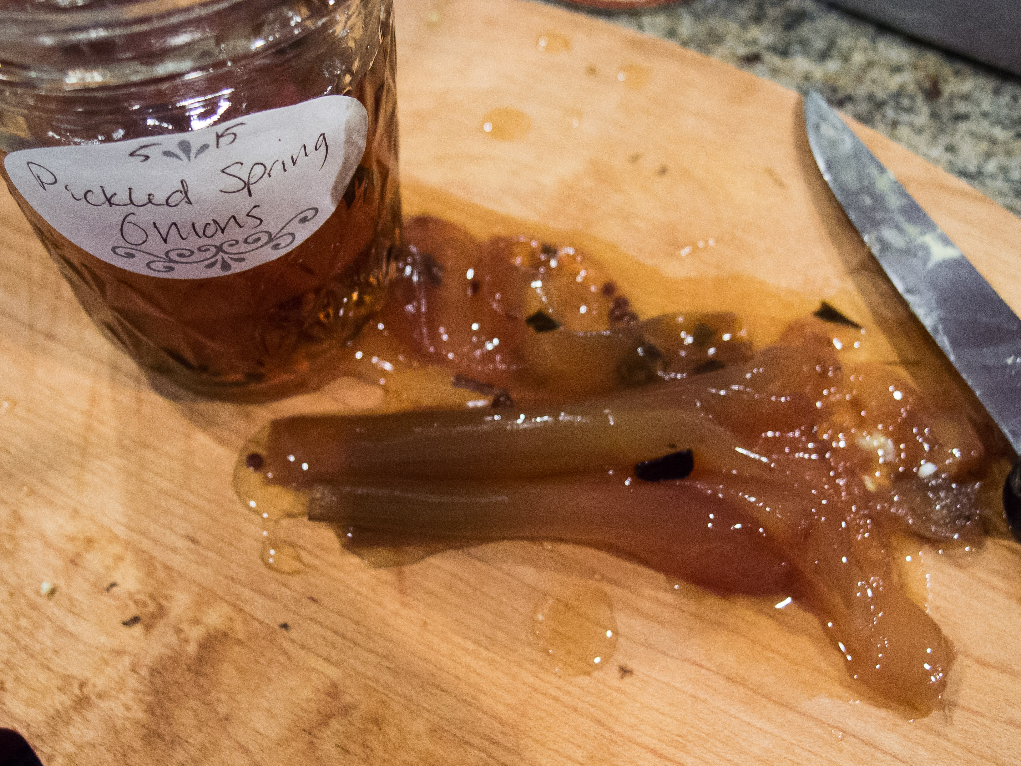 - 1 jar pickled spring onions, drained (with liquid reserved) and chopped