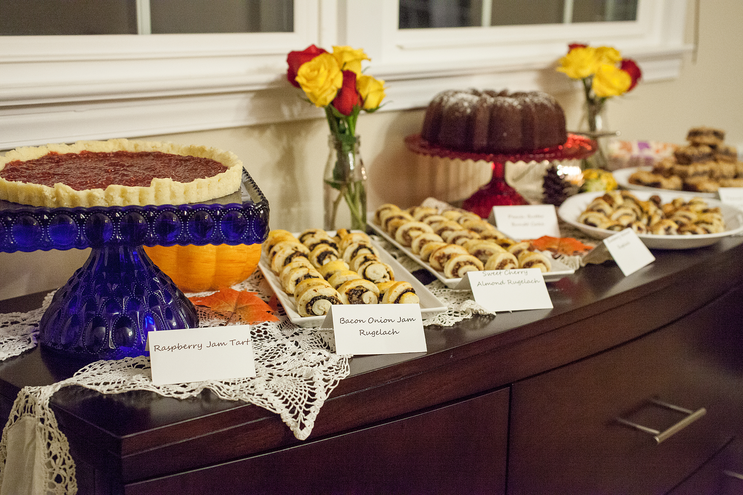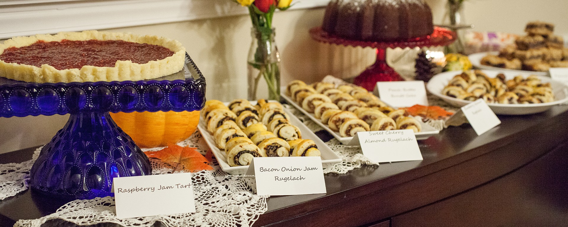 Blueberry Walnut Rugelach, Sweet Cherry Almond Rugelach and Bacon Onion Rugelach
