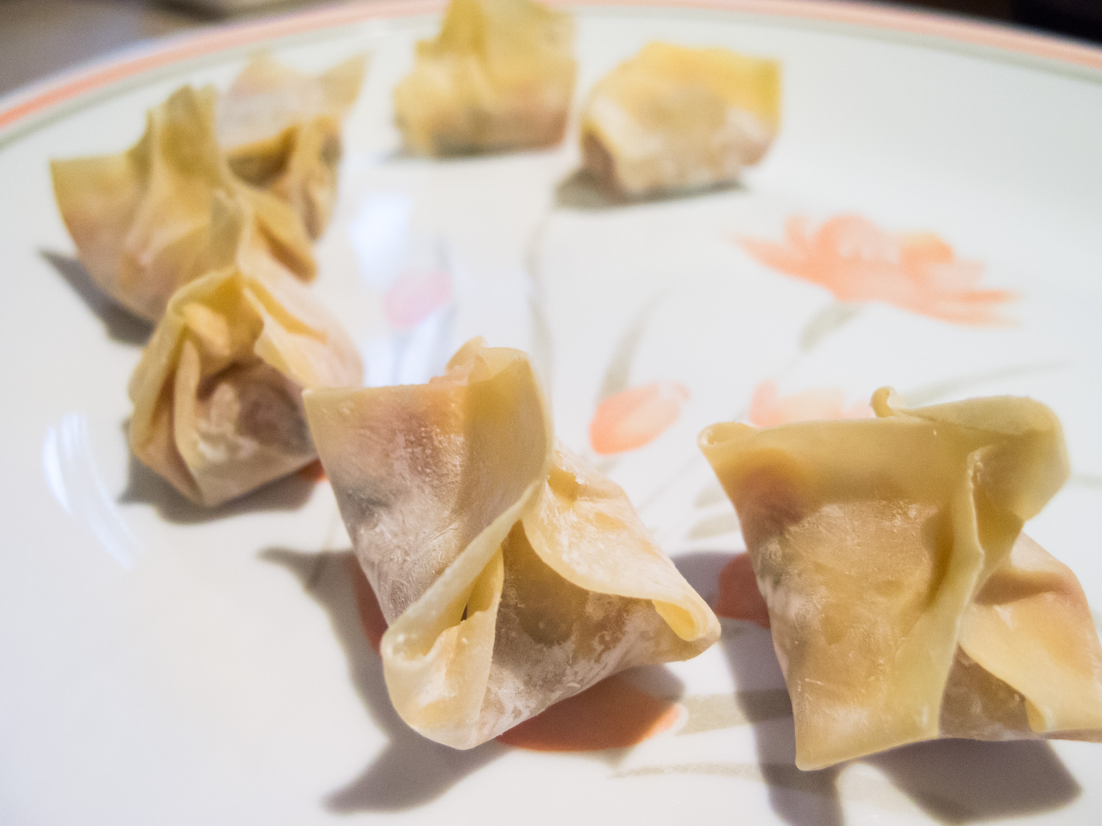 When we visited my Toby’s parents in Montreal in the fall, I asked my mother-in-law to show me how to make her pork and shrimp wontons. They are so delicious, but quite a project to individually wrap each one, so multiple hands for assembly are appreciated.