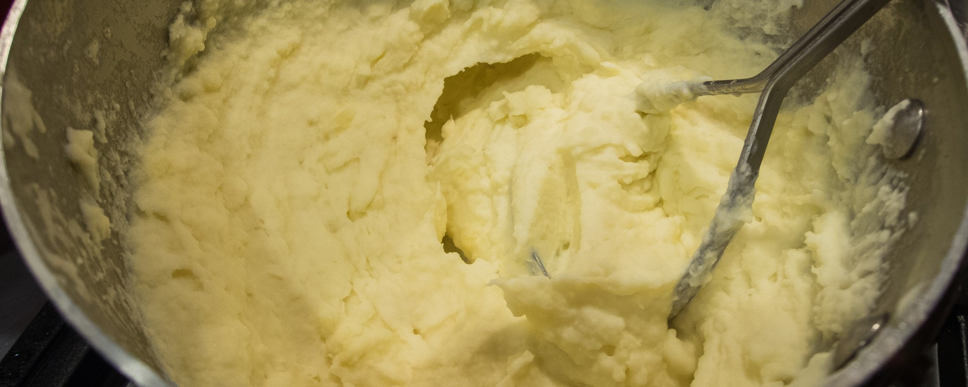 Drain the potatoes in a colander, returning them to the pot. Add the sour cream, butter, cream and salt and mash until smooth. Serve immediately.